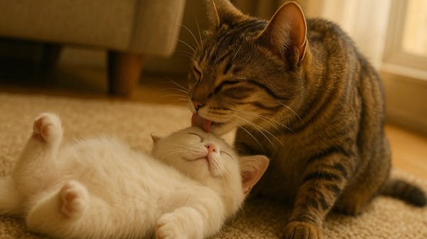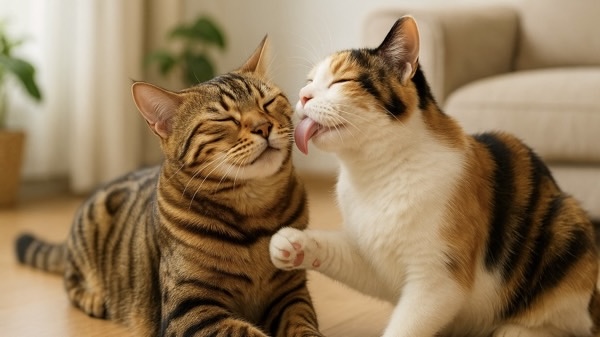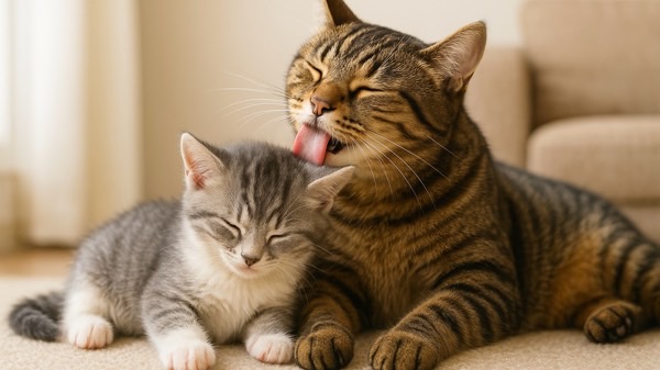 優位な猫が他の猫の毛づくろいをするのは、「自分の立場を示す」「相手を落ち着かせる」「信頼関係を表す」などの意味があり、猫の社会性を示す興味深い行動です。
