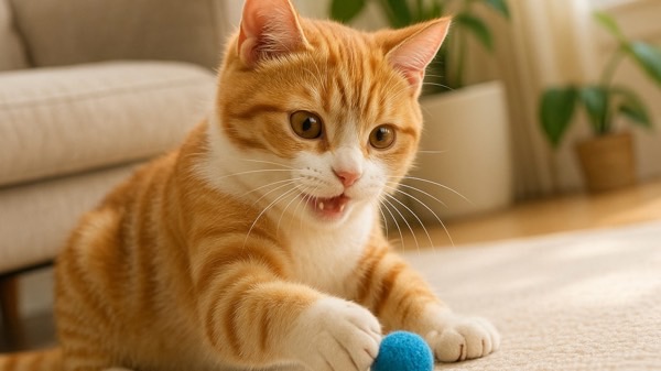 たとえば、おもちゃで軽く遊びに誘ったり、声をかけて撫でたり…