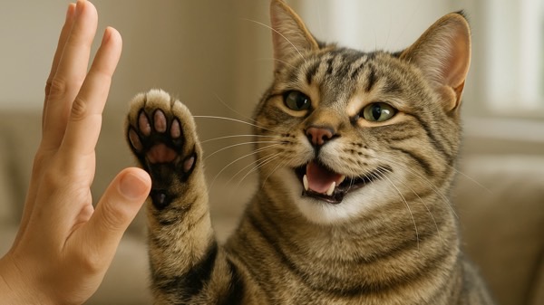 そして最近では、猫が「お手」や「おすわり」といった芸を覚えたり、知らない場所でも堂々と過ごせたりと、精神的にゆとりのある行動を見せる子も増えています。