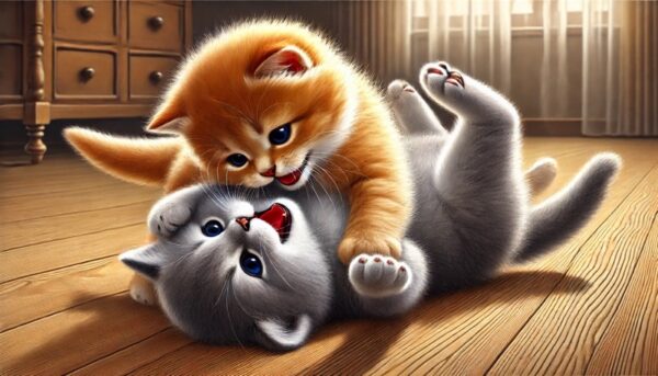 生まれて間もない頃から兄弟猫とじゃれ合いながら学び、適切な噛み加減を身につけていきます。