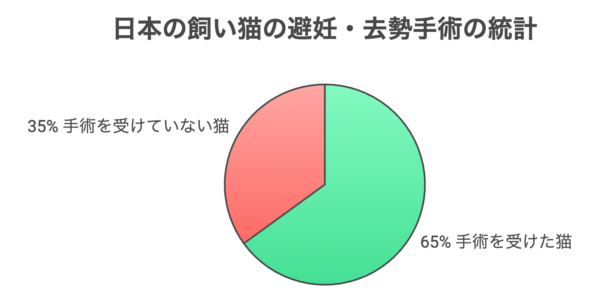 日本においては、飼われている猫のうち約60~70%が避妊・去勢手術を受けており、地域や飼い主の意識によって多少異なりますが、多くの飼い主が望まない繁殖を防ぐために手術を選択しています。