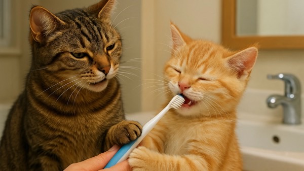 子猫の頃から歯磨きに触れていれば、「これは怖くないもの」と自然に覚えていきます。