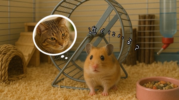特に猫は嗅覚が鋭いため、ハムスターの匂いに気づいて興奮したり、ドアの前で待ち構えるような行動を取ることもあります。