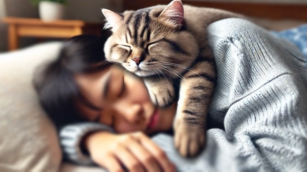 ただし、夜、寝る時に乗られると寝返りが打ちにくくなったり、重さで眠りが浅くなったりすることがあります。