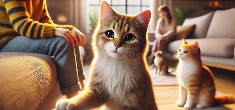 もし、あなたの猫さんがゲストを出迎え、リビングの中心で一緒に過ごしているなら、まさに社交的なタイプです。