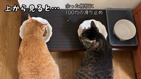 我が家では、余った棚板と100均の発泡スチロール製ブロックで台を作り、滑り止めを敷いています。