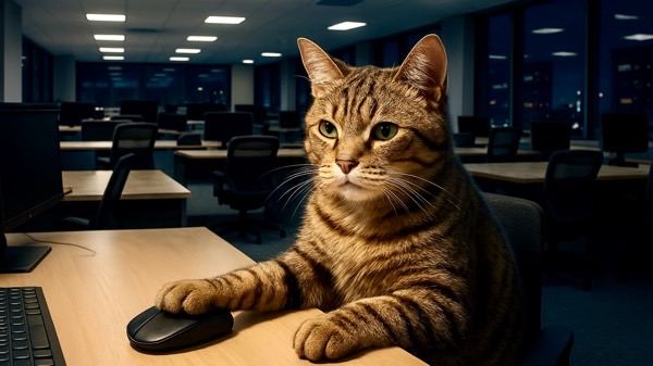 - 夜のオフィスビルは猫の子一匹いないほど静かだった