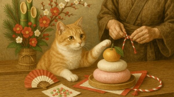 近松門左衛門が1724年に発表した浄瑠璃作品『関八州繋馬(かんはっしゅうつなぎうま)』の中に、「上から下までお目出度(めでた)と、猫の手も借りたい忙しさ」という一節があります。