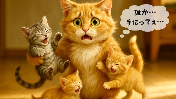 猫の手も借りたい状況とはまさにこのことでしょう。」