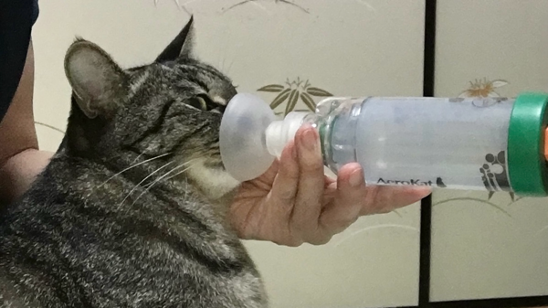 我が家のリクは喘息で、写真は吸引中の様子です。