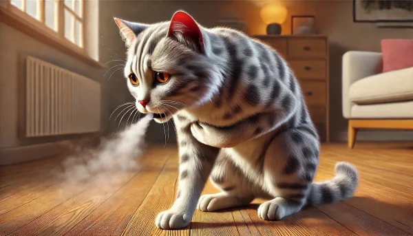 猫がホコリや食べ物のかけらを誤って飲み込んでしまうと、気道を刺激して咳が出ることがあります。