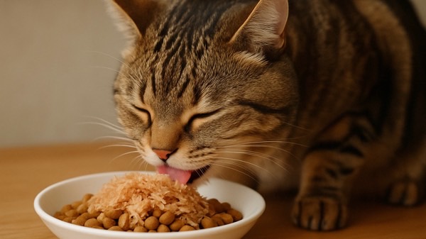 鰹節は主食ではなく、あくまでおやつとして使い、完全な栄養バランスの猫用フードを主食にしましょう。