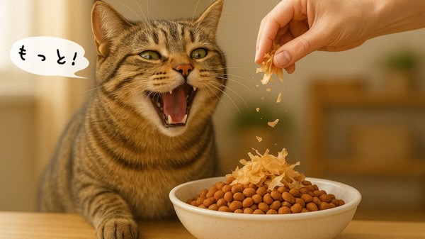 さらに、鰹節に含まれるタンパク質やアミノ酸が、猫にとって非常に魅力的です。